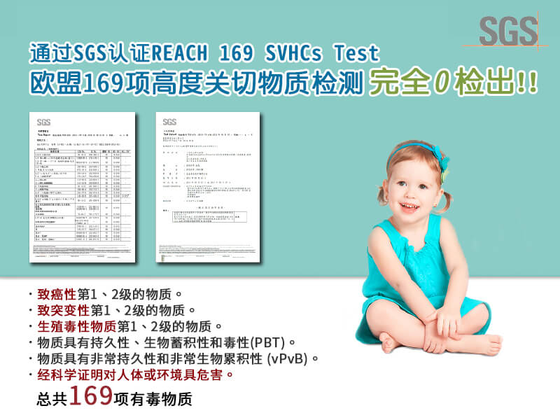 NewClean通过业界最多、标准最高之SGS检测,通过欧盟169种有毒物质、致癌物质、环境贺尔蒙认证 27种氟化物0检出。