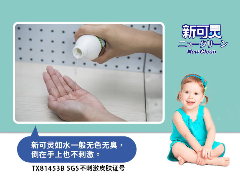 新可灵安全、环保、不残留有害物质,更通过SGS皮肤刺激认证,因此可安心喷洒于口罩外侧,双重防护。